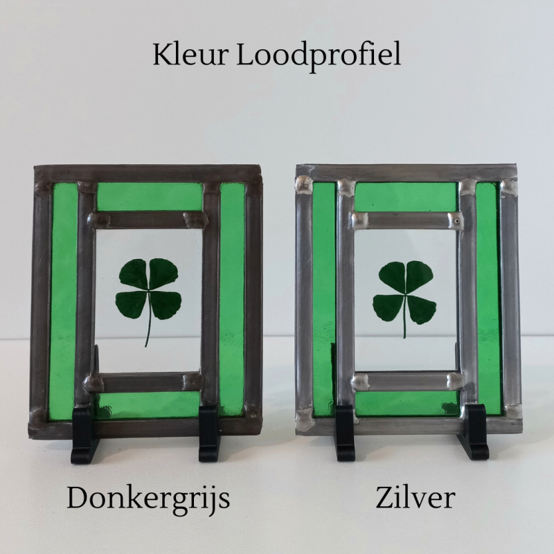 - Wil je het Glas & Loodje liever neerzetten? Kies voor de optie inclusief lood voetjes of zwarte voetjes.