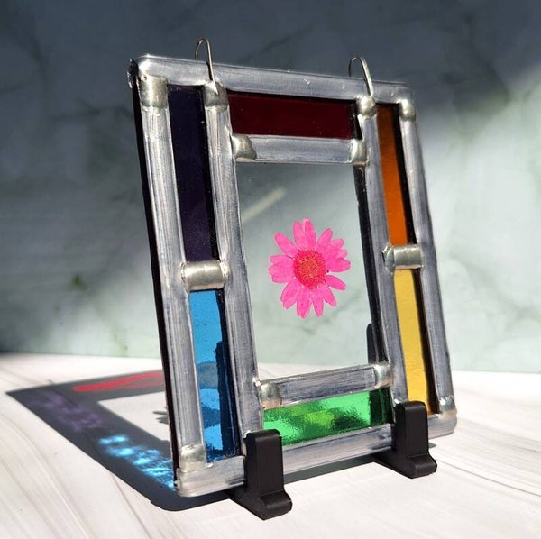 Verras je dierbaren met een bijzonder en handgemaakt glas-in-lood kunstwerk, ingelijst met een echt uniek Madeliefje.