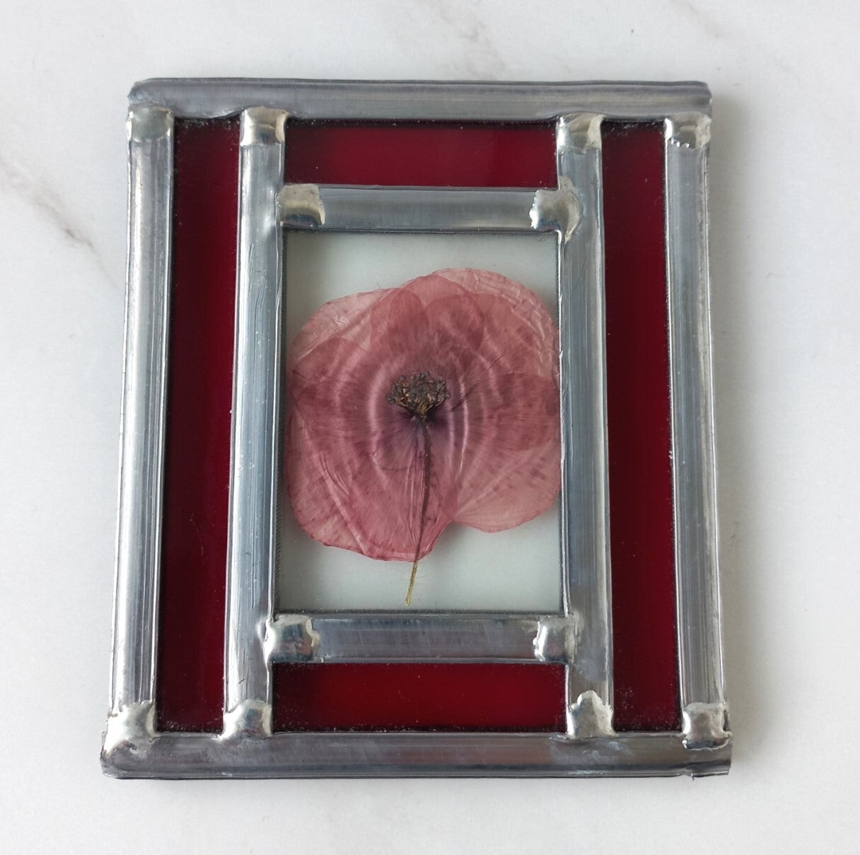 - Laat jouw bloemetje inlijsten tussen glas in lood.