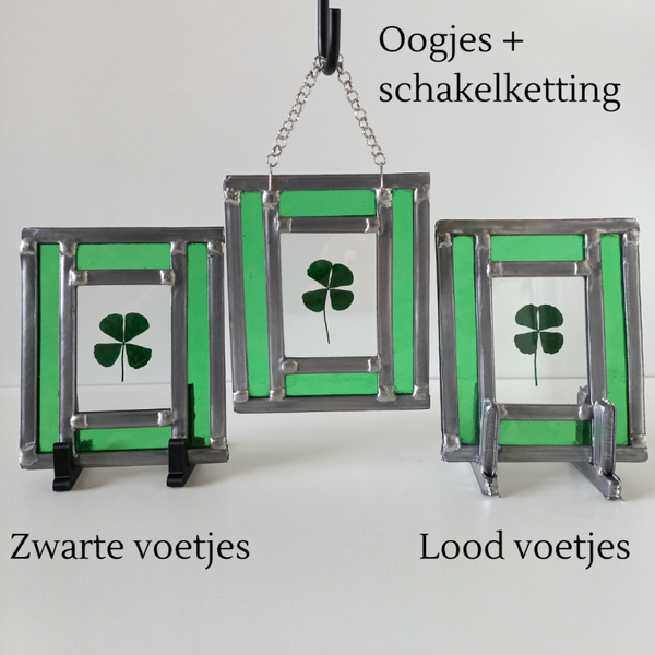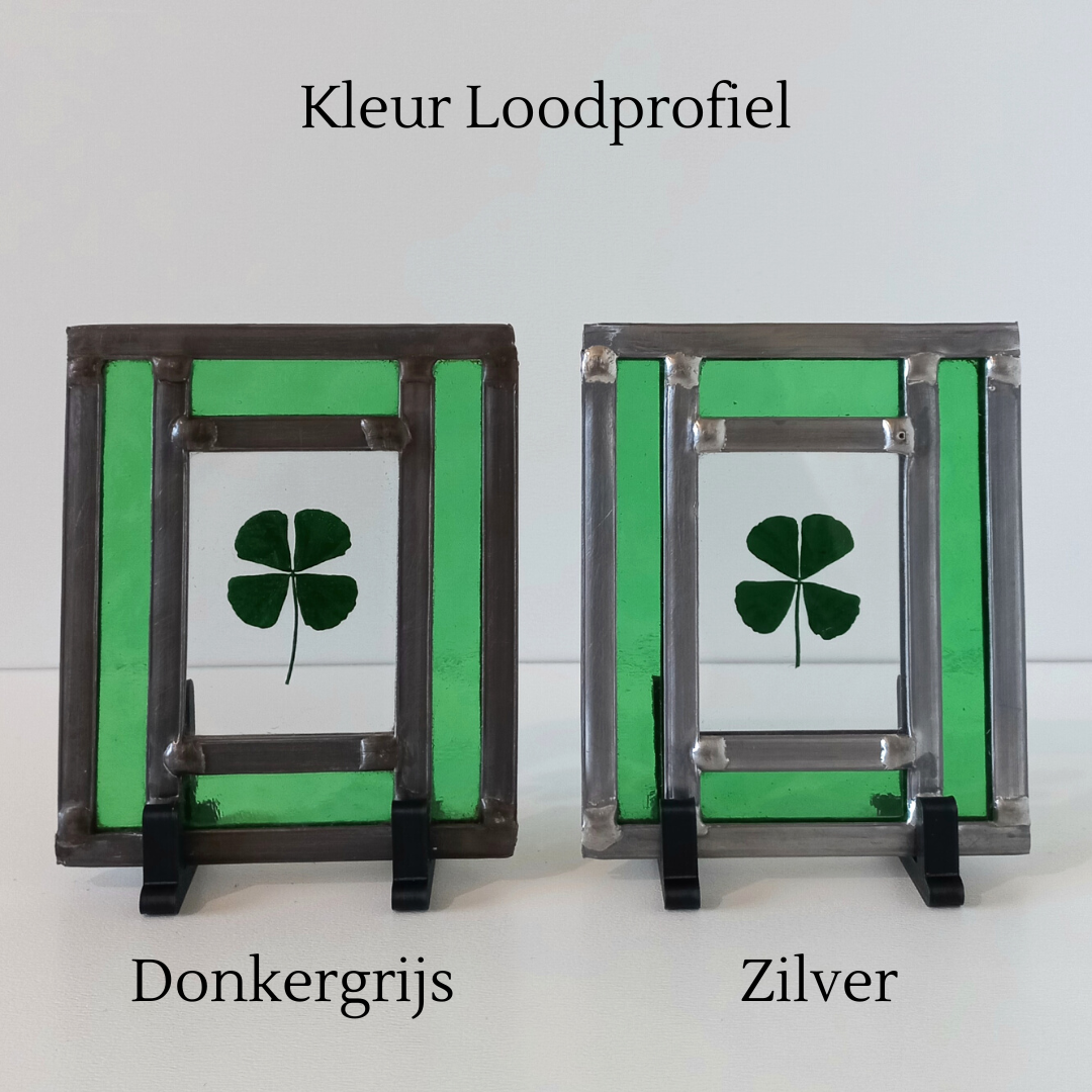 - Je kunt kiezen uit twee kleuren lood: zilver of donkergrijs voor de afwerking.